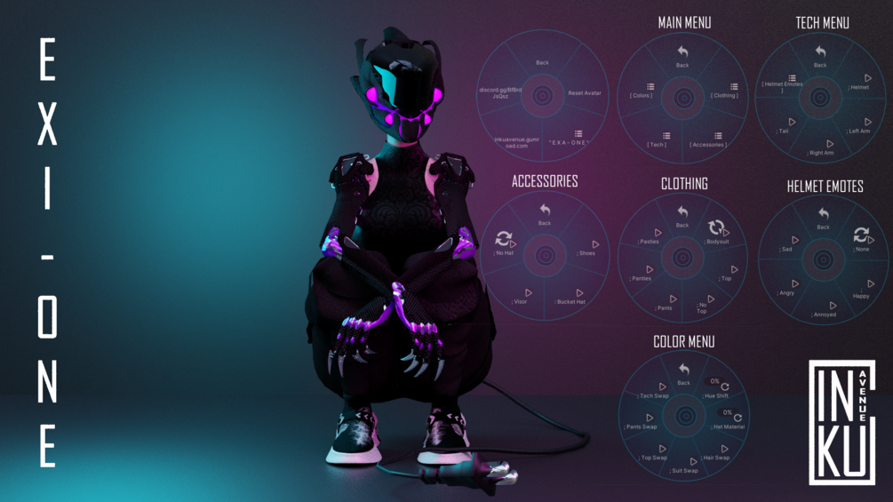 ✦; 5 menu's [Clothing, Accessories, Colors, Tech and Helmet Emotes]